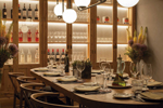 El concepto gastronómico de Roostiq ha sido la base utilizada por la arquitecta y diseñadora de interior María Villalón para crear el ambiente del restaurante donde la cocina a la vista es la gran protagonista. Su estudio ha conjugado el ambiente cool y cosmopolita del barrio de Chueca con la filosofía de respeto al producto y pasión por la cocina a fuego del restaurante. Así, la arquitecta guía por los azules de la imponente barra que recibe al comensal hacia los rojos y calderas junto a las maderas naturales de la sala que dan como resultado una decoración moderna y chic.