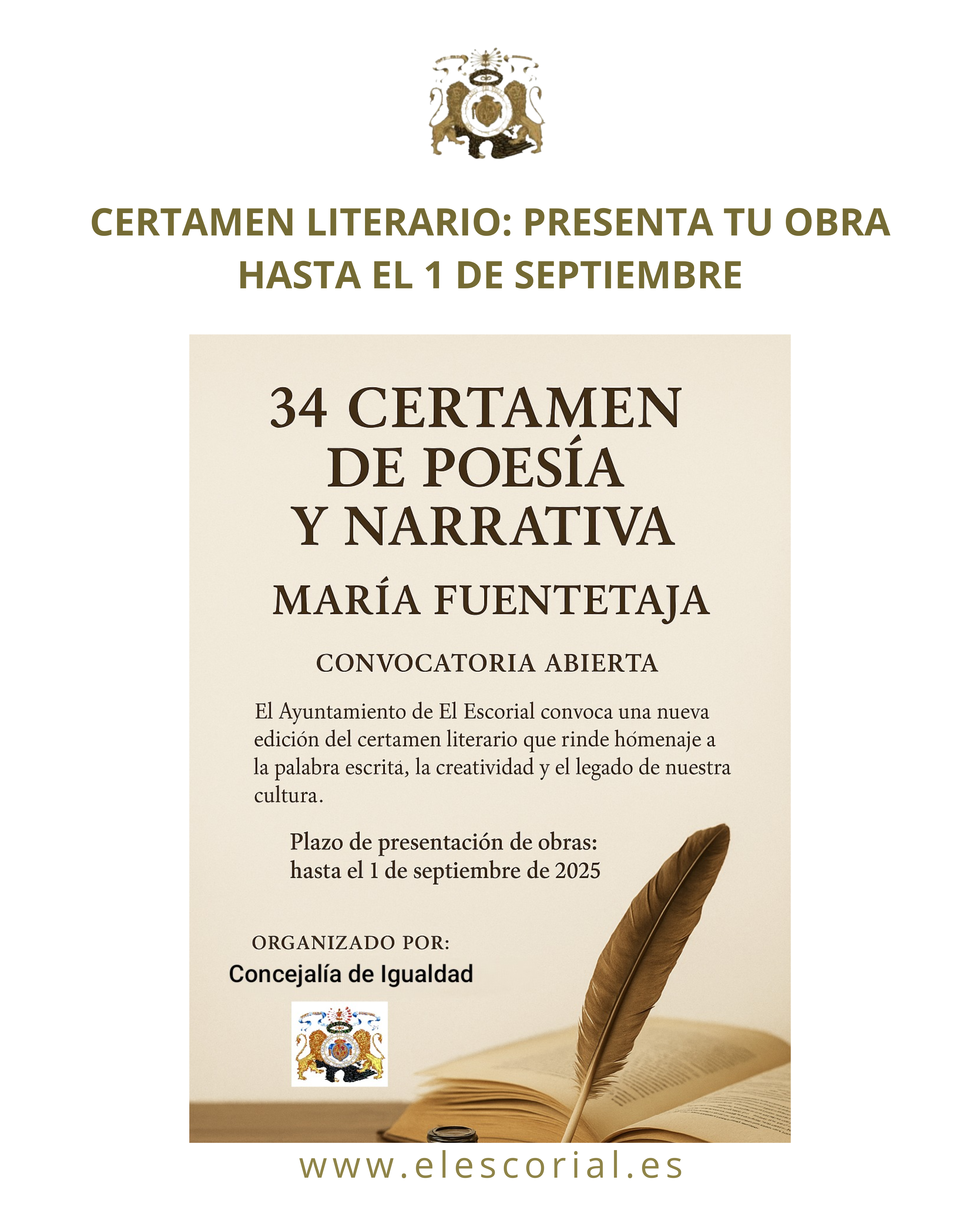 El Ayuntamiento de El Escorial ha abierto la convocatoria para el XXXIV Certamen de Poesía y Narrativa “María Fuentetaja” 2025, una cita literaria consolidada que busca impulsar la creación y dar visibilidad a nuevos talentos.