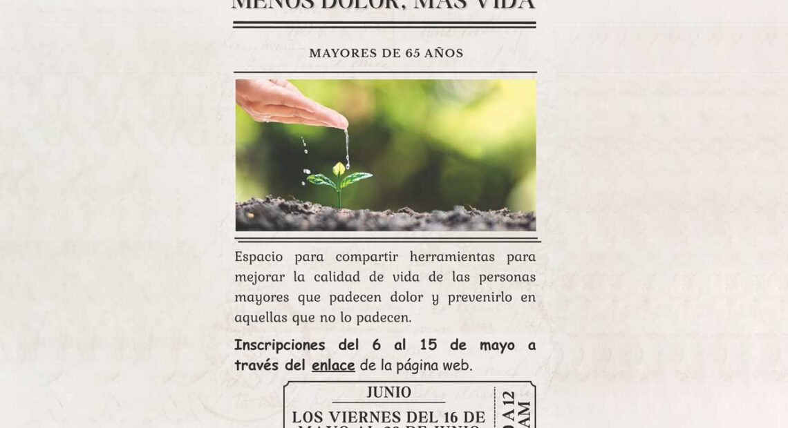 La actividad está dirigida a personas mayores de 65 años que sufran dolor, convivan con alguien que lo sufra o bien que, sin padecerlo, quieran aprender herramientas para prevenirlo.