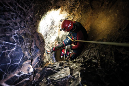 • • La actividad es una mezcla de espeleología y barranquismo, ya que aunque se realiza dentro de una cueva, se utilizan las mismas técnicas y materiales que en el descenso de cañones o barrancos.