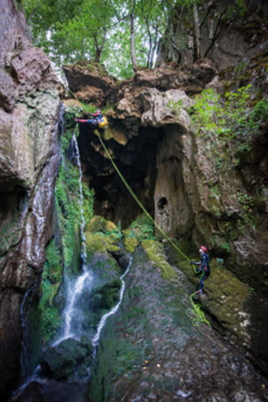 Si el recorrido por el interior de la cueva tiene encanto, el cañón de la Folfoguera que une la Covona con el río Torío es el broche ideal para finalizar nuestra actividad. En el, nos esperan dos preciosas cascadas que descenderemos en medio de un paraje con aire de “paraíso tropical”.