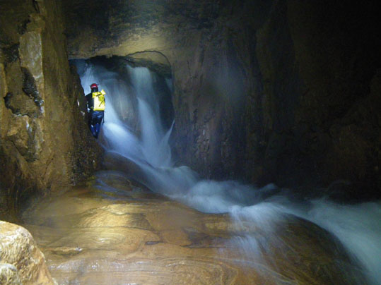 Situada en plena montaña leonesa, Valporquero, que es una de las cuevas turísticas más importantes de España. Pero bajo esta zona “turística”, existe un recorrido con una serie de galerías cerradas a la visita convencional por las que nosotros te llevamos, desciendo el río que formó la cueva hace miles de años, a través de grandes salas, toboganes naturales, saltos, lagos subterráneos y rápeles en cascadas, hasta salir de nuevo al exterior en plenas Hoces de Vegacervera.