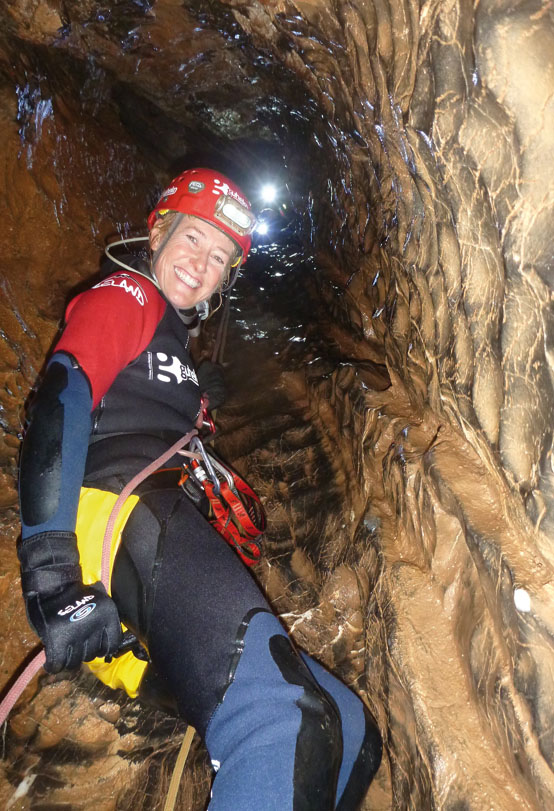 • • Esta  actividad es lo que en espeleología se denomina una “travesía”, es decir, se accede a la cueva por una boca situada en un nivel superior, y se desciende hasta salir por otra boca inferior.