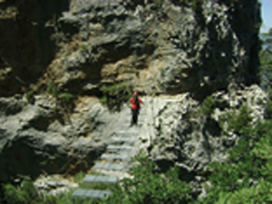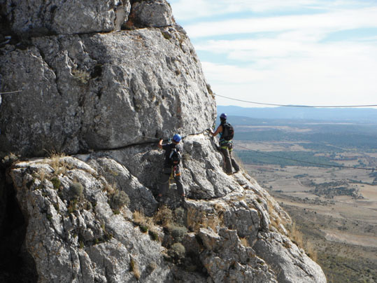 Vía ferrata escuela: itinerario cortó , sin compromiso ni exposición, diseñado expresamente para todo tipo de público, principalmente  niños y principiantes.