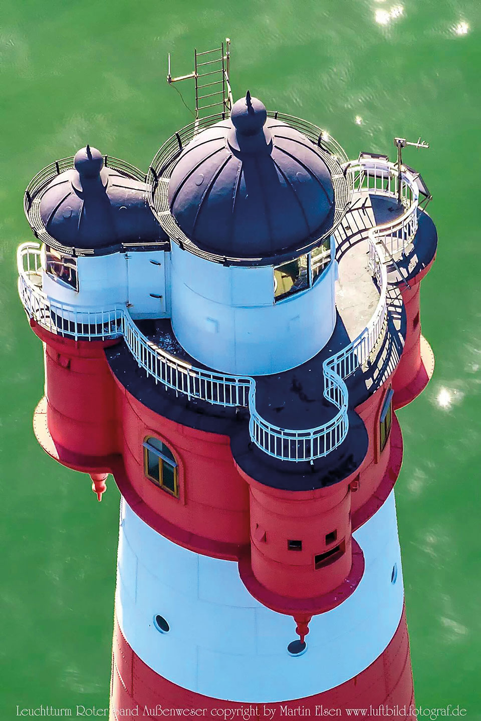 El faro fue construido originalmente en el fondo del mar en 1885, a casi 30 millas náuticas de Bremerhaven y finalmente se salvó gracias a la inversión del gobierno local y la organización de la sociedad civil «Save the Lighthouse Roter Sand eV», en un evento espectacular donde se restauró todo el faro.