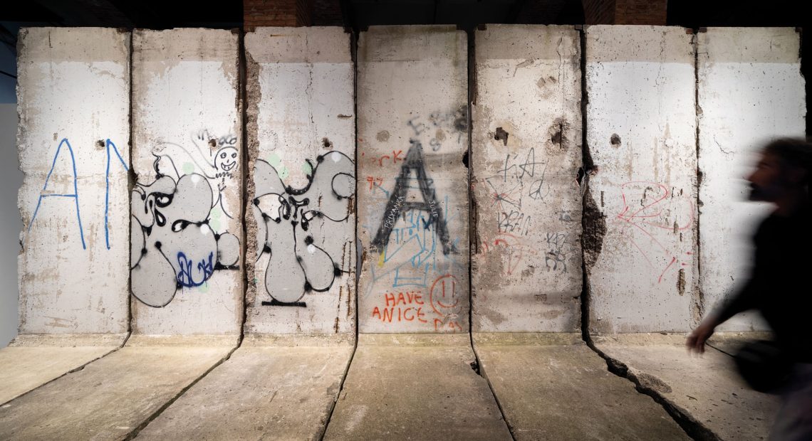La exposición cuenta, entre otras piezas, con 20 metros del propio Muro, de 3,5 metros de altura y 2,6 toneladas, y materiales que retratan su evolución con el paso de las décadas, como el alambre de espino colocado en la primera etapa de la división.
