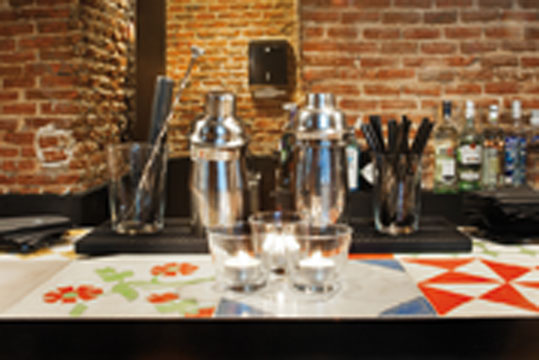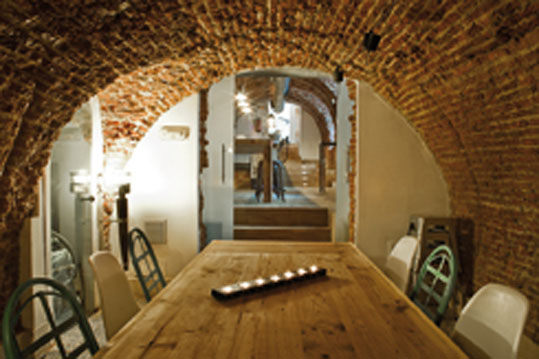 La parte de abajo es una antigua bodega del siglo XIX con luz natural que procede de las ventanas que dan a la calle. Es una zona ideal para cenar y disfrutar de unas copas en la original barra que se encuentra a continuación. Además las maderas de las dos mesas de