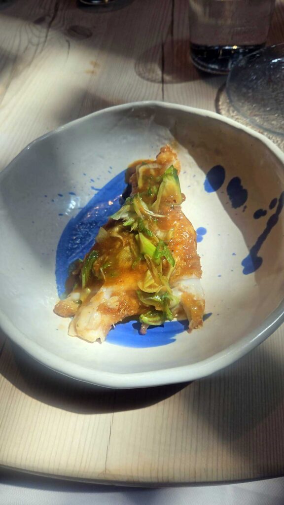 En nuestra experiencia gastronómica, la tortilla de patata en tempura fue uno de esos bocados que te hacen replantearte un clásico. Con una textura ligera por fuera y jugosa por dentro, demuestra que la innovación puede ir de la mano del respeto por el plato original.