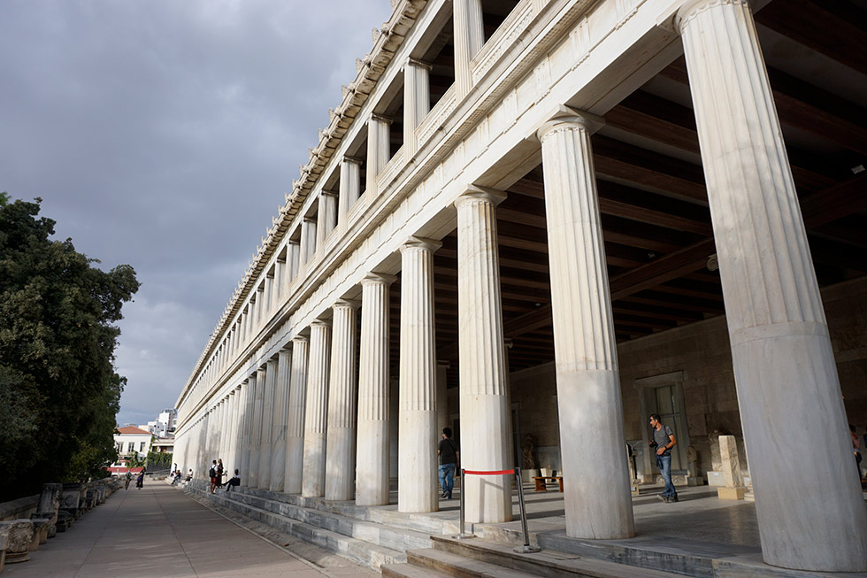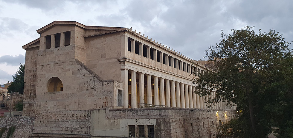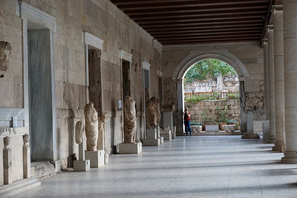 Otro destacado, es el reconstruido Pórtico de Átalo. Una inusual construcción de dos plantas, regalo a la ciudad de Atenas por parte del Rey Átalo de Pérgamo en el año 150 a.C. Era lo que conocemos como un centro comercial. El edificio, plenamente restaurado, se utiliza como museo del Ágora. Contiene valiosísimas piezas halladas durante las excavaciones, gracias a las cuales nos podemos hacer una idea e introducirnos en este lugar, donde se desarrollaba la vida cotidiana de los atenienses. A pesar de la controversia por la reconstrucción de tan admirable edificación, pasear entre el gran pórtico de columnas nos parece fascinante, y de nuevo induce a retroceder en el tiempo….