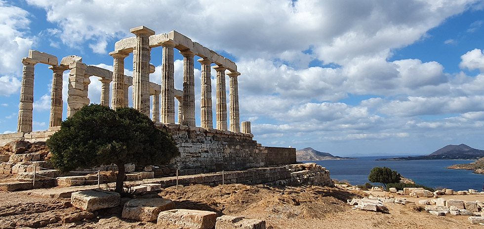 Frente al templo, se avistan grandes islas. El colosal templo tiene columnas estriadas hechas con el fin de paliar la acción erosiva del viento. Como curiosidad, el poeta inglés lord Byron grabó su nombre en una de ellas. El perfil del santuario se recorta sobre el mar… el Templo de Poseidón parece indestructible…sin duda, contemplar la caída del sol en este sitio es una de las cosas más hermosas que se pueden hacer.