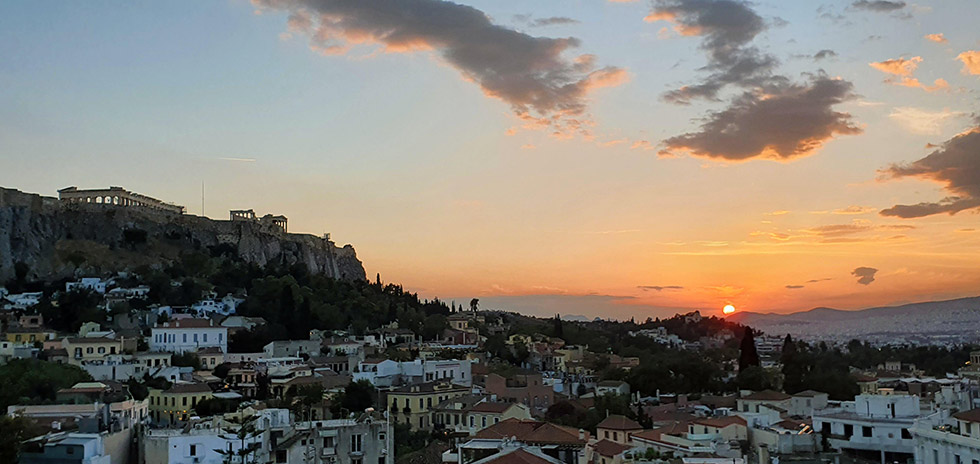 El 22 de septiembre de 2021 volamos Madrid-Santorini en el que fue uno de los últimos vuelos directos de la temporada a la isla. Recorreríamos durante 7 días las islas de Santorini, Paros y Antíparos. El destino quiso que finalmente la aventura durara tres días más de lo programado, teniendo que pernoctar en la capital griega. La pérdida del avión Atenas-Madrid a consecuencia del retraso de un ferry debido a la mala mar, nos permitió conocer tan bella e interesante ciudad.