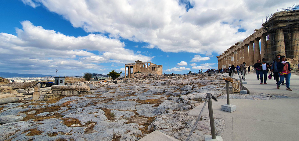 Este lugar, declarado Patrimonio de la Humanidad en 1987, alberga restos de edificios de culto y templos sagrados construidos en diferentes épocas. En la época de Pisístrato s.VI a.C, el acceso al área donde más tardea surgiría el Partenón, se realizaba por una rampa. En las procesiones conocidas como las “Grandes Panateneas” en honor a la diosa Atenea, la comitiva ascendía cargada con ofrendas para la diosa. Después de invasiones y guerras, los elementos arquitectónicos, estaturas y relieves hasta ese momento se sepultaron en una fosa, por creer que habían sido contaminados según los atenienses por manos enemigas. El hallazgo de esta fosa ha sido un punto de referencia de gran importancia para el estudio de la historia y el arte griego.