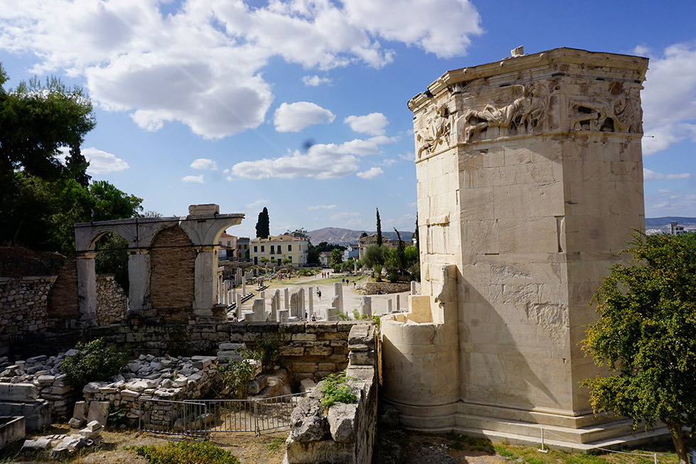 Partimos de nuevo hacia los alrededores del Ágora, un gran espacio abierto que se halla repleto de ruinas y que constituyó el centro de la vida social, política y comercial de la antigua Atenas. Resulta chocante ver el metro exterior de la ciudad transitando junto a los vestigios arquitectónicos.