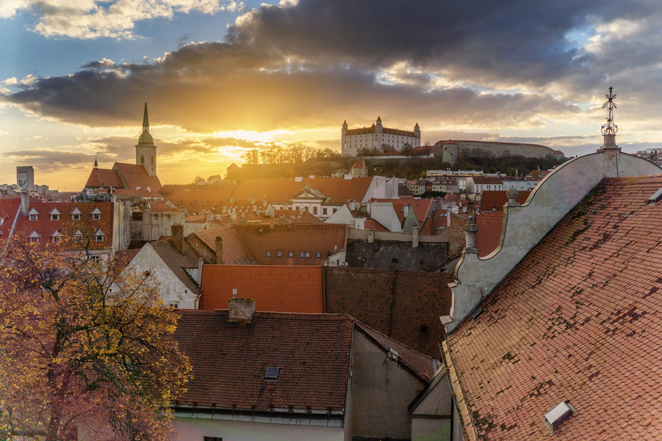 Bratislava, capital de Eslovaquia, es una de las más pequeñas del continente europeo, rodeada de bosques y con un encantador casco antiguo a orillas del Danubio. A tan solo 60 km de Viena, es la opción perfecta para realizar una excursión de día o preferiblemente tomárselo con calma, pernoctar para ver la ciudad iluminada y disfrutar de su ambiente nocturno.