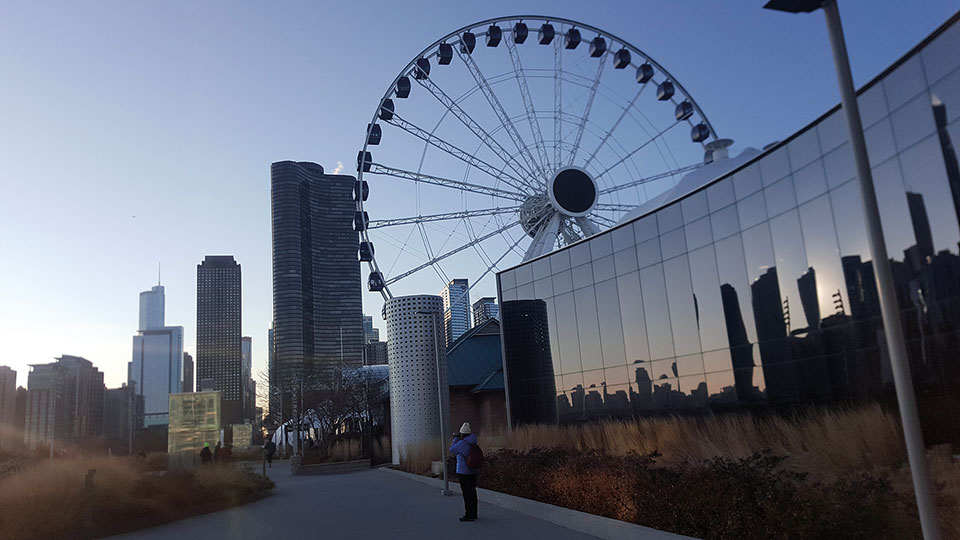 Después de tomar miles de fotografías frente al skyline con el lago a nuestros pies, deshacemos el camino emprendiendo la ruta norte, con el fin de llegar al conocido Navy Pier. Por el camino hicimos varias paradas dedicadas a la contemplación. En concreto, una de ellas fue la sesión de fotos de una boda, una buena elección con tan bellísimo escenario.