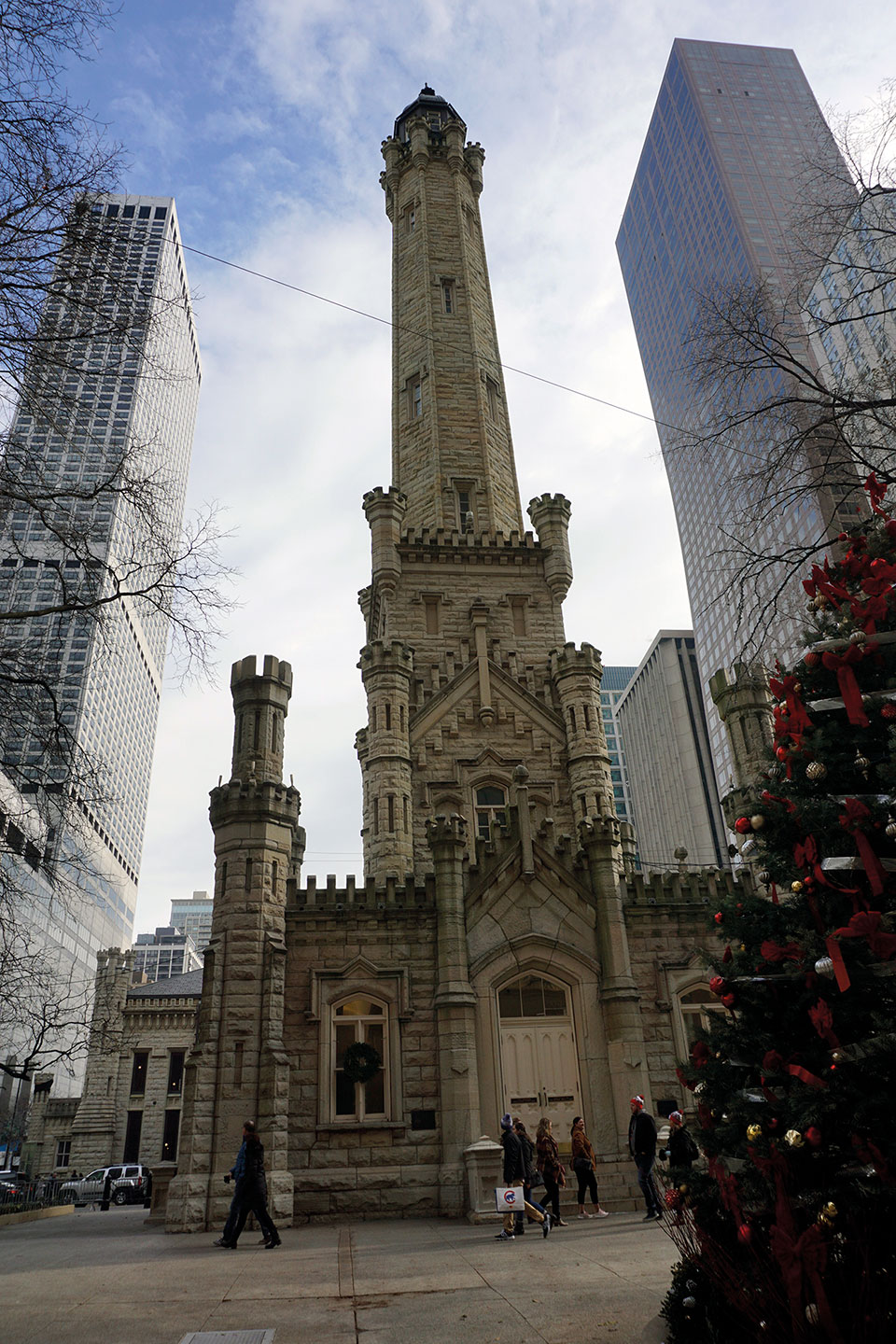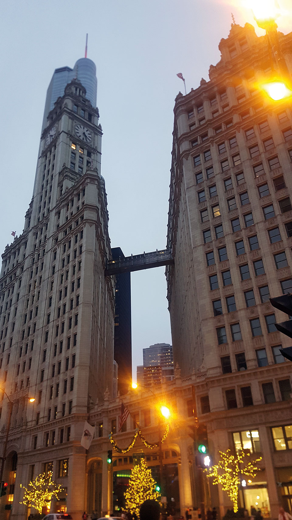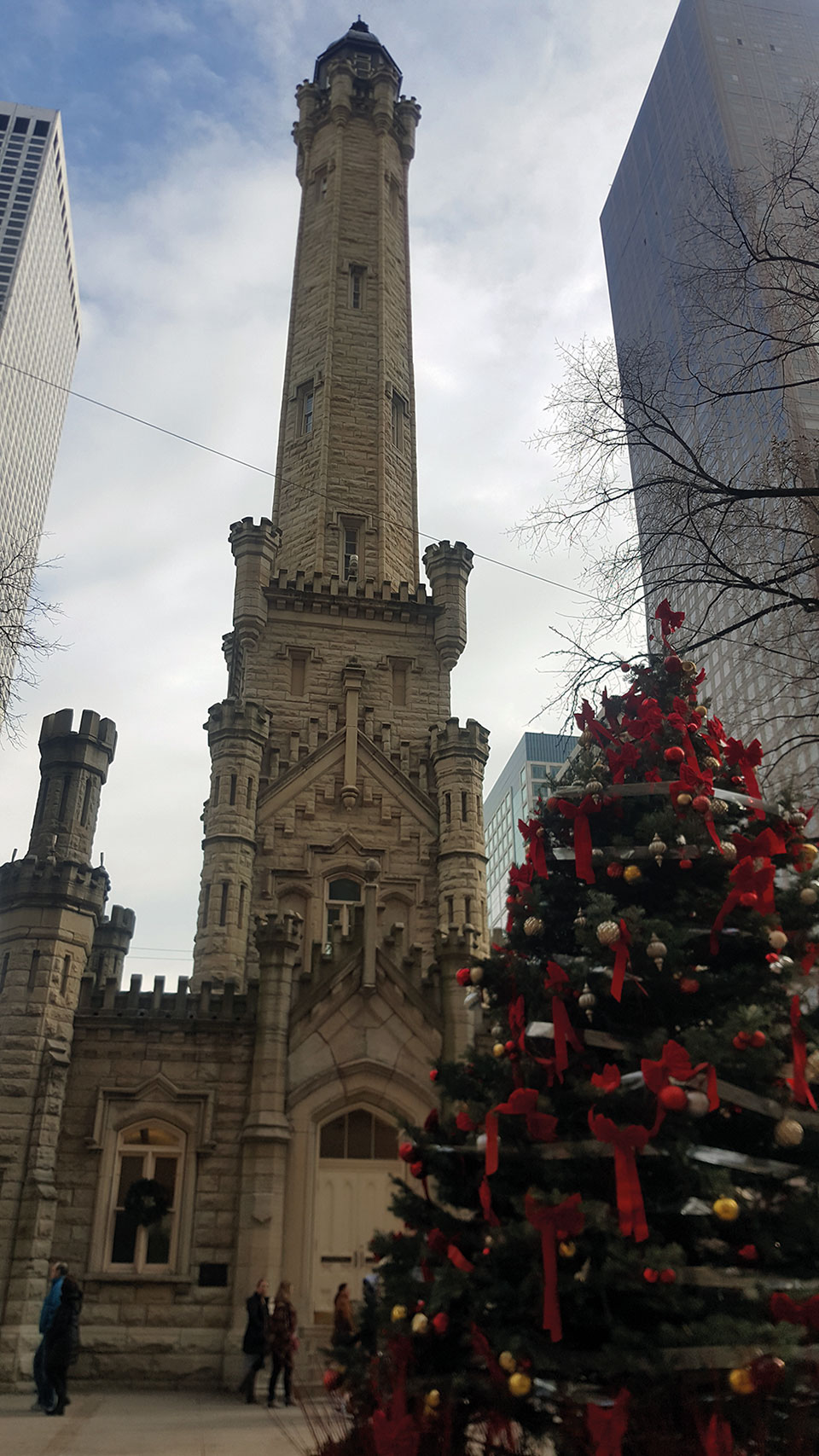 Una vez en tierra, caminamos por la Magnificent Mile, la milla de oro de Chicago, donde en medio de gigantescos rascacielos se halla uno muy atractivo por su antigüedad, y por el contraste con los que le circundan. Se trata de la Historic Water Tower, un superviviente al gran incendio y cuya función era albergar agua del lago Michigan. Un poco más adelante, llegamos a John Hancock Center, donde otro observatorio 360º ofrece una de las mejores vistas de la ciudad y la laguna. Como opción, en la planta 96, una cafetería nos ofrece varias perspectivas mientras tomamos algo.