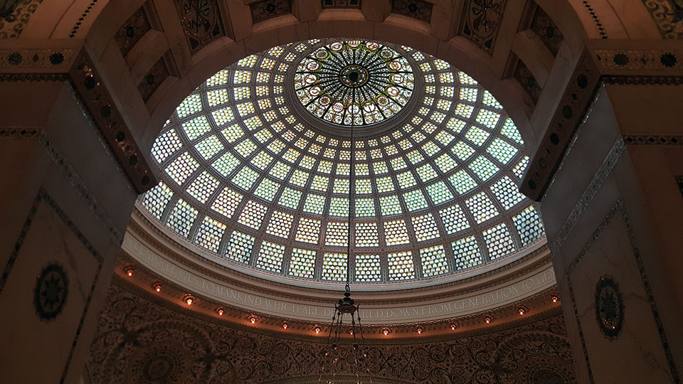 Día 2: El segundo día de nuestra estancia y con un sol radiante, nos lanzamos a conocer los parques a las orillas del lago. Comenzamos la ruta visitando el Chicago Cultural Center. Un bonito edificio neoclásico, que ofrece elementos de interés arquitectónico y fue diseñado como biblioteca de la ciudad. Los salones y galerías presentan columnas dóricas, puertas de caoba, techos ornamentados, escaleras palaciegas, paredes de mármol, mosaicos, vestíbulos abovedados y una valiosa cúpula de vidrieras estilo renacentista. El Preston Bradley Hall, está coronado con una austera cúpula de cristal de 12 m de diámetro de Tiffany diseñada por el artista J. A. Holtzer. El Centro, afirma que es la cúpula de Tiffany más grande del mundo. Una maravilla de edificación en la que además se realizan exposiciones y la entrada es gratuita. No se puede pedir más. Tiene varias entradas por la calle Randolph y Washington.