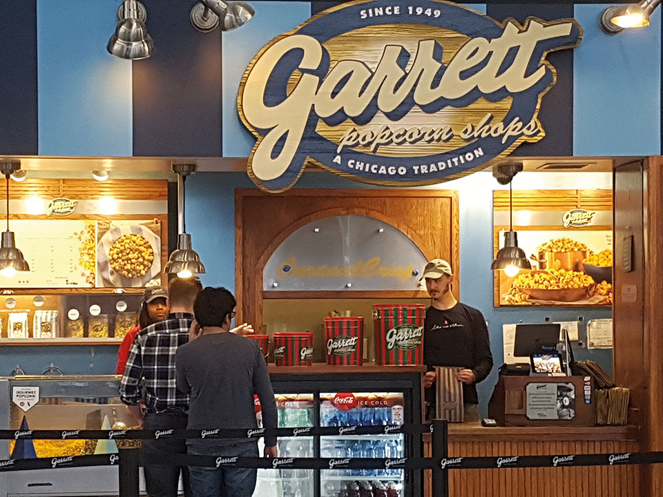 Y como no habíamos tenido ocasión anteriormente, probamos las crujientes y sabrosas Garrett Popcorn,  estilo Chicago Mix, una combinación de palomitas dulces de caramelo y palomitas saladas de queso cheddar. Una explosión de sabor y también de calorías. ¡Hay que atreverse!