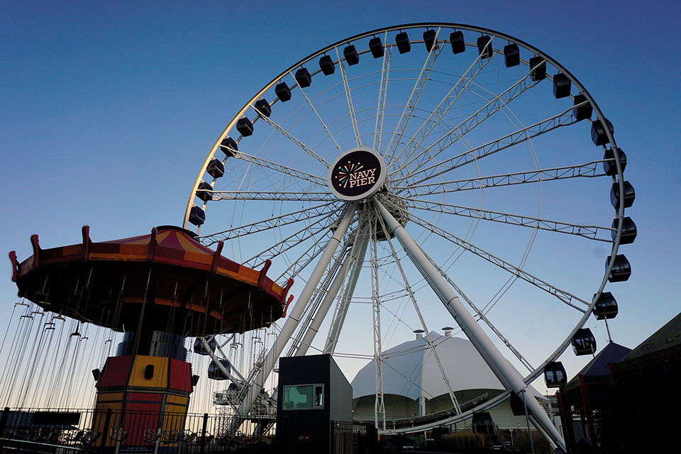 El Navy Pier es un largo muelle que durante la Segunda Guerra Mundial fue lugar de adiestramiento de la Marina. Reconstruido como centro comercial y recreativo, es actualmente un lugar de ocio para todos los públicos, con tiendas, restaurantes y varias atracciones de feria, entre las que destacan la gran noria “The Centennial Wheel” que funciona todos los días del año, o el paseo en barco por el lago.