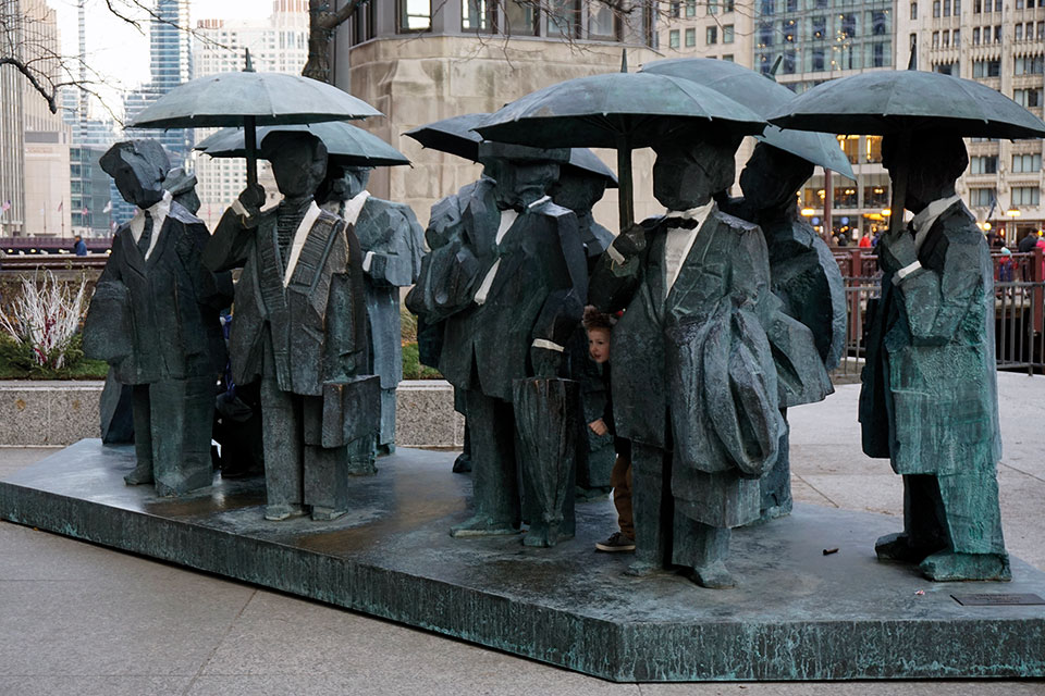 Otra espectacular obra es el Calder’s Flamingo, realizada por el artista estadounidense Alexander Calder, que se halla frente al edificio Federal Kluczynski, la tonalidad anaranjada choca con la oscura y acristalada construcción que se halla detrás. Muy recomendable visitarla al anochecer, cuando apenas no hay luz y el color del flamingo se vuelve casi de neón. Entusiastas de estos auténticos museos al aire libre, en LaSalle Street con Jackson Blvd hallamos la inspiración de Gotham City.