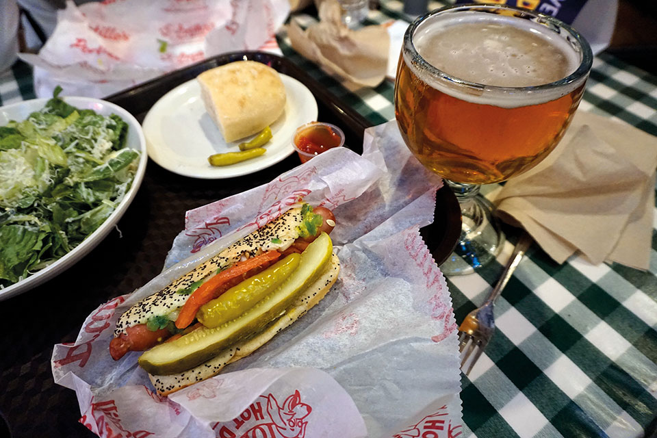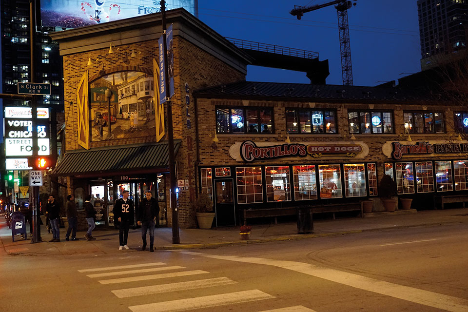 Para finalizar el día nos dirigimos a otro de los lugares representativos de Chicago: “Portillo’s”, un clásico de comida rápida y económica, en un animado local donde probamos, al fin, los perritos calientes de carne de ternera al estilo Chicago.
