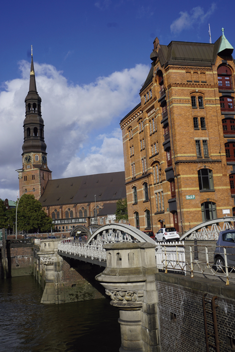 Speicherstadt o Ciudad Almacén se le llama a la antigua zona de canales y almacenes sobre pilotes de madera del puerto de Hamburgo, que, tras ser restaurados, han dado paso a un seductor y emblemático barrio de vanguardia. Es el mayor complejo de almacén histórico del mundo. Las edificaciones destacan por su ladrillo rojo y torreones góticos. Tienen varias plantas y disponen de una salida al agua y otra a la calle. Tras los rojizos muros, se guardaban todo tipo de mercancías venidas de ultramar, como café, té, cacao y especias y, en las últimas décadas, alfombras orientales. Un distrito asombroso, de puentes y escondidos recovecos que desvelan gran parte de la historia de Hamburgo.