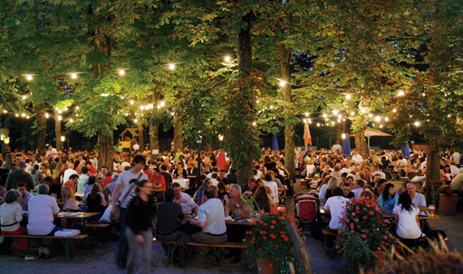 Entre los locales más tradicionales de cerveza encontramos las Biergärten. Son cervecerías al aire libre, donde se reúnen habituales y visitantes especialmente en primavera y verano. Con alargadas mesas y bancos de madera es inevitable entablar conversación con el de al lado y conocer gente. Además se permite llevar comida propia, pero es obligatorio comprar la cerveza y refrescos en el kiosco cuya marca de cerveza será, la que se sirve ese día en esa Biergärten. Los Biergärten son un componente social de la vida en la ciudad.