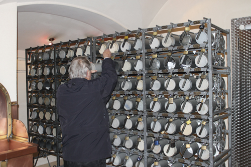 Como curiosidad, en una de las esquinas de esta peculiar cervecería se alberga una taquilla de jarras de barro y un pilón. En estas anómalas taquillas los habituales del lugar, con su propia llave guardan su jarra de un litro, lavándola en el pilón para su uso. Un usual frecuenta de media la cervecería cuatro veces por semana y muchos de ellos vestidos con el tradicional traje.