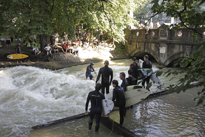 • Aunque Munich no tiene playa, si tiene ríos y lagos donde refrescarse los días de calor. El Englisher Garten es un inmenso jardín con grandes explanadas verdes y mágicos rincones de agua. Como curiosidad, incluso en invierno y nevando, los amantes de surf pueden practicar este deporte en las olas formadas en el gélido río.