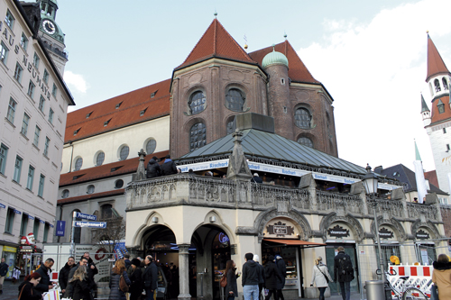 La céntrica plaza conocida como Marienplatz es el corazón de Múnich desde su nacimiento. Originalmente la plaza se llamaba Schrannen, pero fue renombrada como la Plaza de Santa María para pedir a la Virgen que protegiera a la ciudad de la epidemia de cólera que la asediaba.