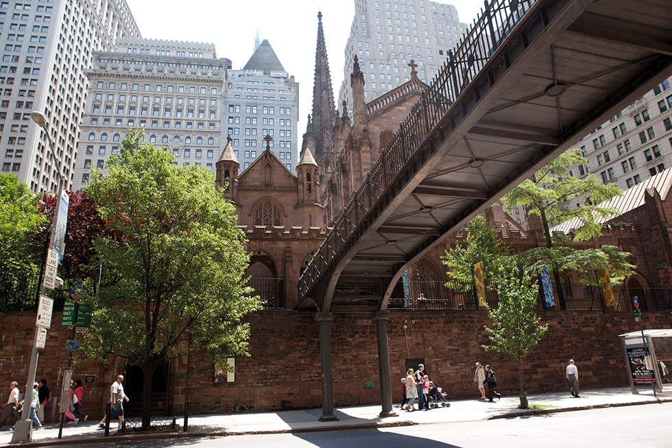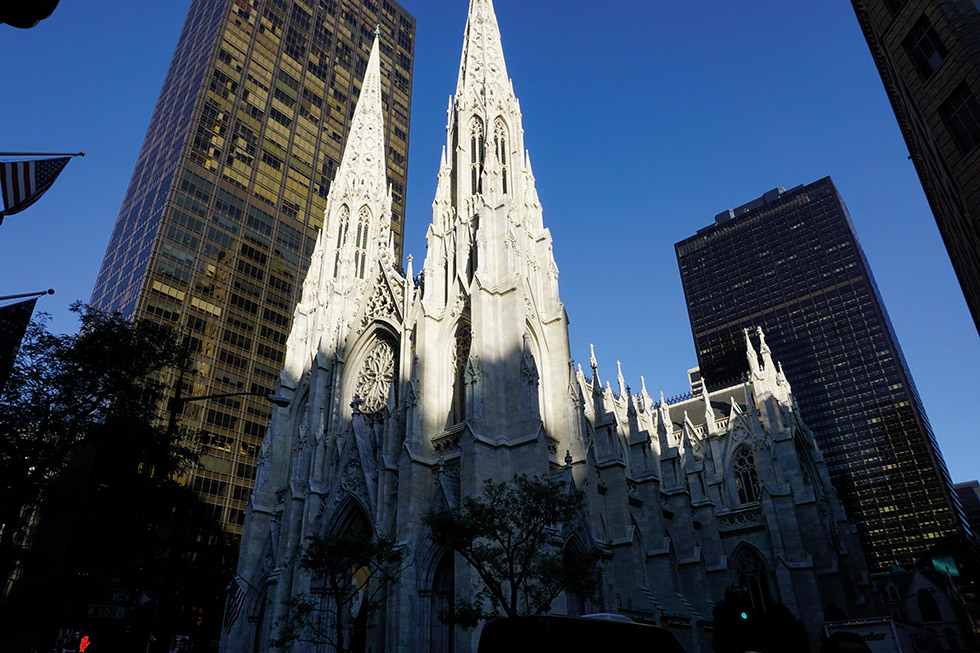 Frente al Rockefeller Center, rodeada de altísimos rascacielos, creando un espectacular contraste se encuentra la Catedral neogótica de San Patricio, St. Patrick’s Cathedral construida en el siglo XIX en honor al patrón de Irlanda. En el interior hay una copia de La Piedad tres veces mayor que la del Vaticano, un órgano en la galería principal que tiene casi 6.000 tubos y el altar de San Miguel y San Luis que fue diseñado por Tiffany & Co. La verdad es que el resultado es grandioso.