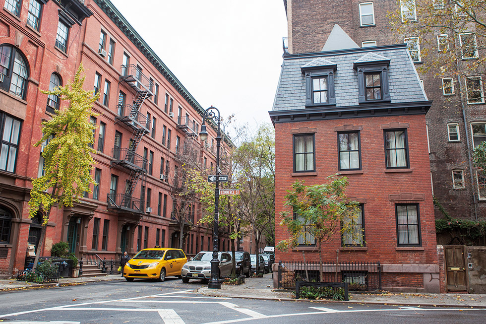 The High Line es un parque elevado que circula por una antigua línea férrea por la parte oeste de la ciudad, y, casualmente una de las entradas se hallaba cercana al hotel. Atraviesa varios barrios, entre ellos Meatpacking District, uno de los barrios de moda. Es bastante curiosa, ya que discurre entre jardines y vanguardistas edificios, acogiendo a su vez algunas exposiciones de arte. En recorrerla se tarda aproximadamente una hora y media, y si se hace temprano mejor, porque con mucha gente, al ser una vía estrecha no la hubiéramos disfrutado igual. La tomamos en la parte alta, en Hudson Yards, y antes de bajar hacia el sur, subimos un pequeño tramo a admirar The Vessel, una maravilla arquitectónica que consiste en una estructura de acero conectada por secciones de escaleras, que se elevan 45 metros, haciendo de mirador de esta parte de la ciudad y gran desafío para los incansables. Aunque tiene 80 rellanos y no es necesario subir hasta arriba, nos conformamos con ver el curioso edificio en la distancia, que, desde luego, no pasa desapercibido. Volvimos sobre nuestros pasos hacia el sur, entre los edificios se esconden lugares muy acogedores, con bancos dedicados a la contemplación y el descanso. Terminamos en el West Village. Una vez en este barrio, atravesamos elegantes y apacibles callecitas de viviendas con exclusivos y fotogénicos accesos de escalinatas repletas de vegetación.
