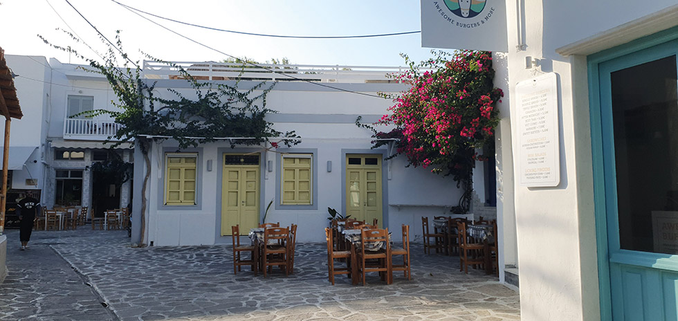 Nos refrescamos degustando un delicioso helado en una terracita techada de vegetación. Antiparos es otro típico pueblo cicládico que nos fascina y nos deleita con nuevos y cautivadores rincones.