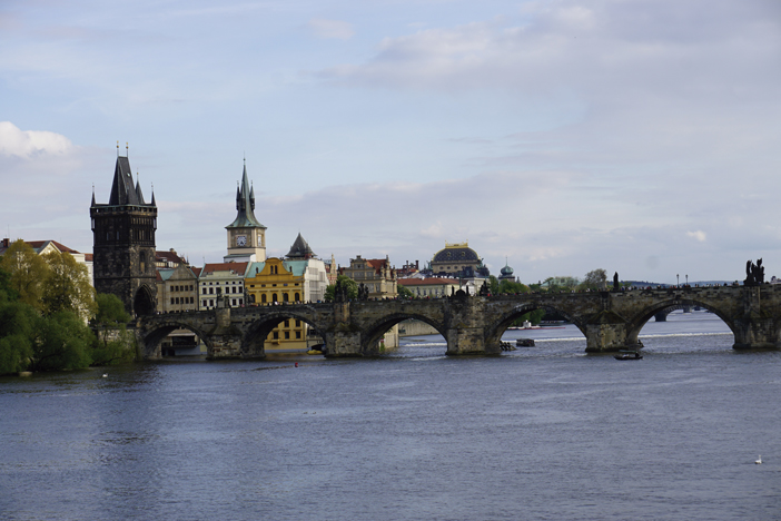 El Puente de Carlos nunca dejará de fascinar a los pintores, fotógrafos y poetas que le halagan en sus obras. Cuando los primeros rayos del sol tocan su suelo adoquinado e iluminan las macizas torres góticas en los dos extremos difícilmente se encuentra un lugar más romántico. Con la imponente silueta del Castillo de Praga de fondo y la galería de estatuas barrocas en sus laterales, no es de sorprender que pertenezca a los lugares más bellos de Europa. El mejor punto para hacer las fotos panorámicas mas bonitas del Puente de Carlos y del Castillo de Praga, es el malecón Smetanovo nábrezí.