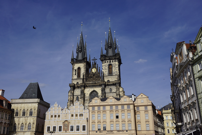 Detrás de las casas barrocas, sobresalen dos afiladas torres de más de 80 metros de altura. Se trata de La Iglesia de Nuestra Señora de Týn, un edificio imponente que data de 1375 y es el símbolo del estilo gótico de la ciudad. Una Iglesia cargada de historia y cuya iluminación nocturna acapara todas las miradas.
