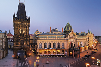 Contigua a esta torre, la Casa Municipal contrasta con una hermosa fachada decorada con esculturas dispuestas en semicírculo. Aunque data de 1689, la actual se construyó entre 1905-1911, de ahí que se trate de un portentoso edificio de arte modernista. Sin duda debe su importancia histórica a que fue el escenario de la proclamación de la independencia de Checoslovaquia en 1918. Otro hecho significativo que tuvo lugar en este edificio fue la reunión de los líderes comunistas con el futuro Presidente demócrata de Praga, en el año 1989. Entre los rincones más interesantes cabe mencionar la famosa sala Smetana, la sala principal de conciertos de Praga. Es sin lugar a dudas, una de las habitaciones más elegantes de Arte Nouveau. Merece la pena entrar a observar el interior del edificio. También hay rutas guiadas, pero si no hay tiempo para la visita, podemos tomar un descanso en la cafetería y paladear exquisitas tartas que nos presentan en suntuosos carritos rodeado de un histórico y refinado ambiente. Asimismo se ubican dos restaurantes muy diferentes, uno mas distinguido y elegante y otro en de la planta inferior mas tradicional.