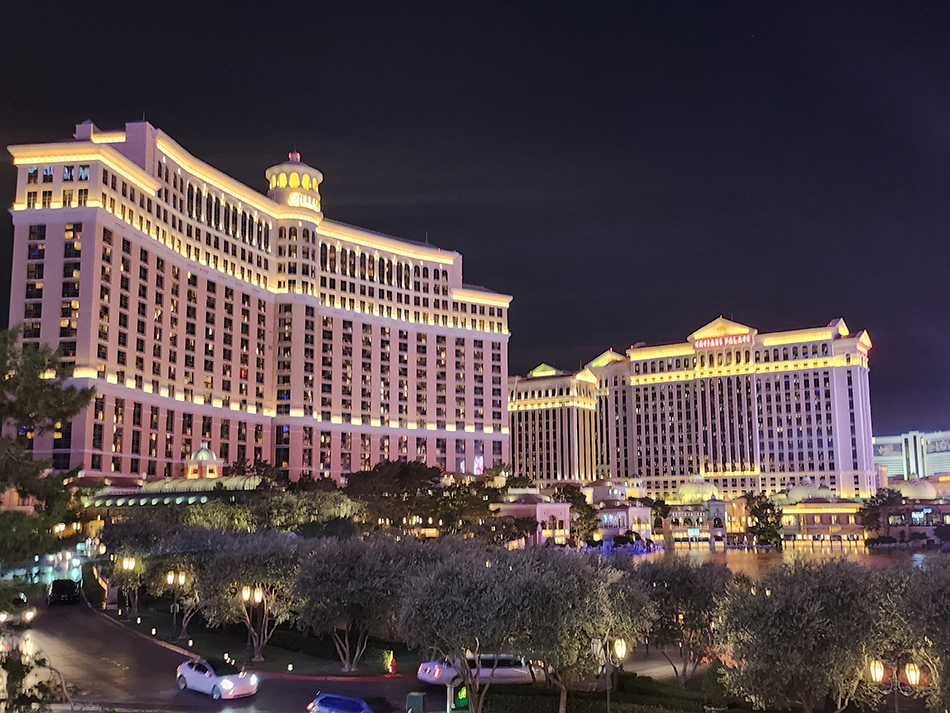 En seguida apareció el afamado Hotel Bellagio, con su icónica fuente danzante que nos brinda un espectáculo de elegancia y esplendor, y que ha sido escenario de numerosas películas y eventos, convirtiéndose en un símbolo de la ciudad. La fuente del Bellagio, situada frente al lujoso hotel, es conocida mundialmente por sus impresionantes coreografías acuáticas. Con más de 1,200 chorros de agua que alcanzan alturas de hasta 140 metros, el espectáculo es una maravilla técnica y artística. Cada actuación es única, con diferentes combinaciones de música y movimientos. Es otro recordatorio constante del glamour y la energía vibrante que caracterizan a Las Vegas.
