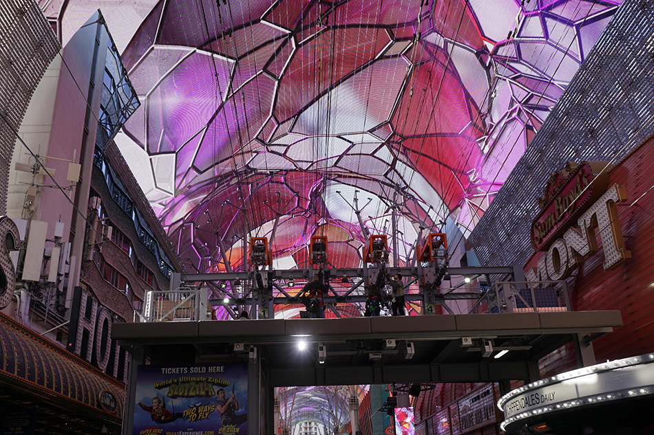 Se trata de una larga avenida techada con una pantalla LED gigantesca que cubre varias manzanas. Es impresionante la experiencia inmersiva cuando te adentras en todo un espectáculo de luz y sonido, con impresionantes efectos visuales sincronizados con música del momento.