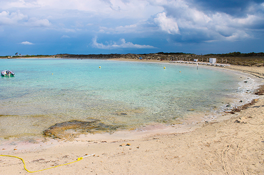 Formentera y la Isla de Espalmador sólo las separa un pequeño canal de unos 150 metros. Cuando la marea esta baja, se puede cruzar andando o nadando. Mucha gente lo hace, pero no es nada recomendable ya que hay mucha corriente. Si conseguimos atravesarlo, nos encontramos dentro de un parque natural con gran variedad de fauna y flora. Realmente en este emplazamiento da igual desde el lado que lo contemples, es un lugar paradisíaco… La playa que se nos presenta es la de Playa des Racó de s`Salga que no tiene nada que envidiar a las playas caribeñas. Al ser zona protegida no existe ningún establecimiento, de ahí también quizá su belleza. Hay que tener en cuenta que también para acceder a esta isla se organizan excursiones en catamarán desde el puerto o se puede alquilar una zodiac.