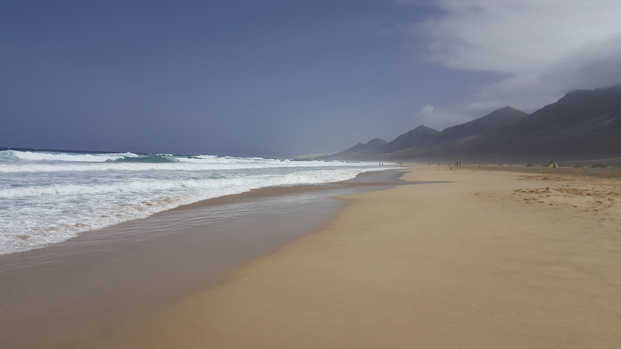 El segundo día nos dirigimos al Sur de la Isla, al Municipio de Pájara. Queríamos conocer  algunas de las playas más bonitas de esta zona, las Playas de Jandía, famosas por el azote del viento y las olas, muy apreciadas por los amantes del kite y el windsurf. Salimos temprano ya que nos hallábamos a unos 77 Km de nuestro nuevo destino: Morro Jable.