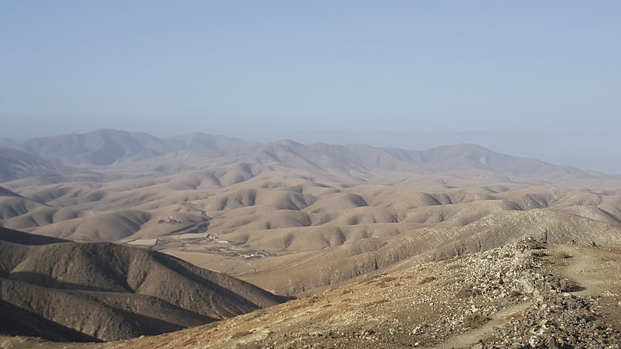 En el mirador de Morro Velosa pudimos contemplar el macizo de Betancuria. A sus pies se extiende un vasto paisaje majorero, un paisaje marcado por el desmantelamiento erosivo y la desertificación a la que ha estado sometida la Isla desde la Antigüedad.