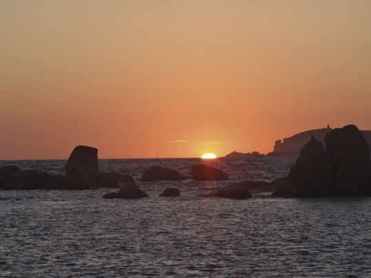 Al atardecer y enfrente de nuestro amarre, la llamada Double Plage. Una increíble piscina natural donde la puesta de sol no tiene igual.