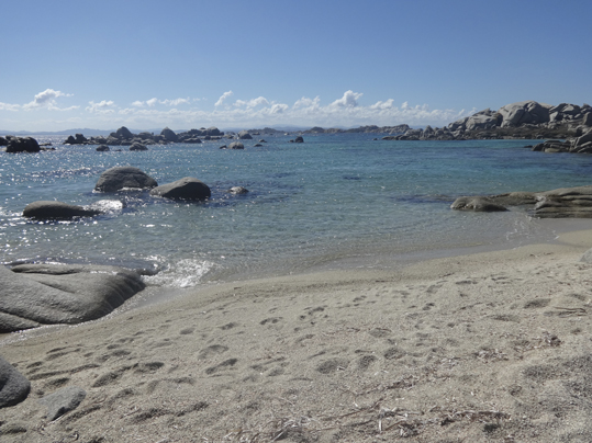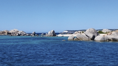 En el insólito “Manto de la Virgen” ya estuvimos en otra ocasión, por lo que siempre atendiendo al viento, bordeamos el litoral tan espectacular que nos muestra el Archipiélago de las Lavezzi. Una reserva natural tan sólo a 10 km de Bonifacio y accesible únicamente por mar. Estos numerosos islotes de apiladas y redondeadas rocas grises, están deshabitados. Calas de blanca arena y aguas azul turquesa van apareciendo a medida que nos aproximamos a esta anómala costa en la que hay que navegar con  bastante precaución debido a los numerosos peñones que afloran en el mar. Aquí el paisaje es único y es increíble, se respira pura naturaleza. Nos quedamos ensimismados con estas vistas durante algunas horas.
