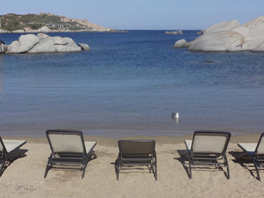 En Cavallo, la bahía del Greco, la bahía de Zeri y la bahía de Palma la naturaleza se conserva casi intacta, en un paisaje impresionante y calma total. En el hotel, al que merece la pena realizar una visita bien sea para degustar sus excelentes platos o tomar un cóctel en su bar, alquilan coches eléctricos para recorrer este pequeñísimo islote.  Siguiendo la ruta marcada por un pequeño mapa que nos proporcionan, llegamos a calas no accesibles por barco e incluso encontramos un lago con una gran diversidad de aves. En los sorprendentes y tortuosos caminos de arena descubrimos magníficas casas que se ocultan entre bosques y riscos. No hay ni un alma. Esto es precioso. Esto es el paraíso.