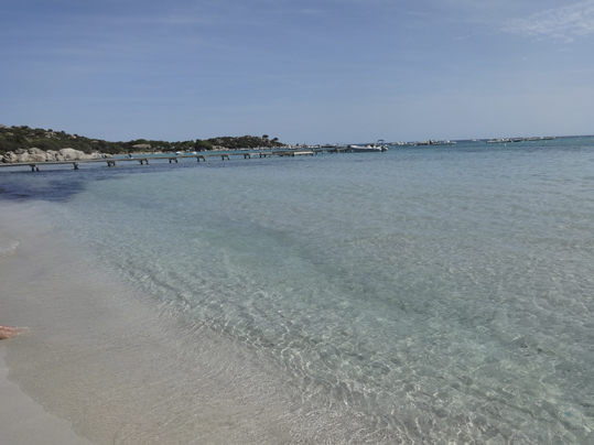 Continuamos y otra parada en Santa Guilia,  una playa grande, mas turística que la anterior pero igualmente bella con un inmenso y verde pinar. Dispone igualmente de chiringuitos y servicio de ida y vuelta a la embarcación. Decidimos fondear y degustar deliciosa comida corsa en la terraza de un restaurante que encontramos bastante animado y con música tradicional, donde nos sirvieron a orillas de la playa deliciosos platos y variados cócteles.