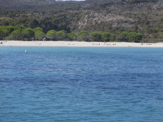 Finalmente y a nuestro pesar debíamos continuar hasta Puerto Vecchio, rumbo al este. A medida que avanzamos por la costa van apareciendo unos de los símbolos mas emblemáticos de la isla, las “torres genovesas”, situadas en la entrada a golfos y ensenadas. A nuestro paso, se abren bellas playas de aguas transparentes, como en el Golfo de San’Amanza, la Bahía de la Rondinara y Santa Giulia. Fondeamos en la playa de Rondinara donde nos dimos largo baño. En un lateral se halla un chiringuito rodeado de espeso bosque. En esta playa hay un servicio de dingui (zodiac) para llevarte a tierra y disfrutar del otro lado de la bahía.