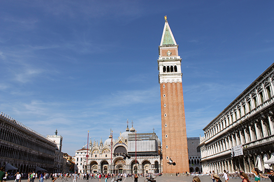 Saliendo de la Plaza, junto al inicio del Gran Canal se divisa la isla de San Giorgio Maggiore y el campanario de su Iglesia. Antiguo monasterio benedictino, es obra maestra del ilustre Andrea Palladio. Otra opción para ver la ciudad desde las alturas es subir a su campanario.
