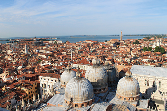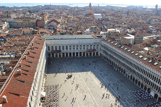 No se puede dejar de subir al Campanille que ofrece unas estupendas panorámicas de la ciudad más allá la laguna e incluso los Alpes.