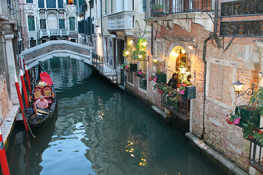 La góndola permite ver desde distintos ángulos los escondites de la ciudad, que de otro modo serían inaccesibles. Un paseo en góndola cuesta aproximadamente unos 50 euros 35 minutos. La disponibilidad será mayor en las cercanías de canales grandes y calles concurridas.