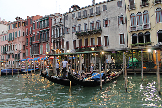 Aunque para moverte por la ciudad no es imprescindible, hay que tomar un vaporetto para alternar los paseos por las callejuelas de Venecia, con los recorridos por el canal. Visitar Venecia es equivalente a navegar por el Gran Canal. Recórrelo de arriba abajo. Muy recomendable hacerlo por la noche cuando los edificios están iluminados. ¡es espectacular!. De día es impresionante observar el trasiego de góndolas, vaporettos y taxis que diariamente transitan casi como el tráfico rodado de cualquier autovía.